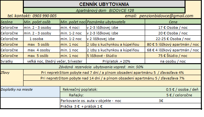 Pensions Bidovce 128